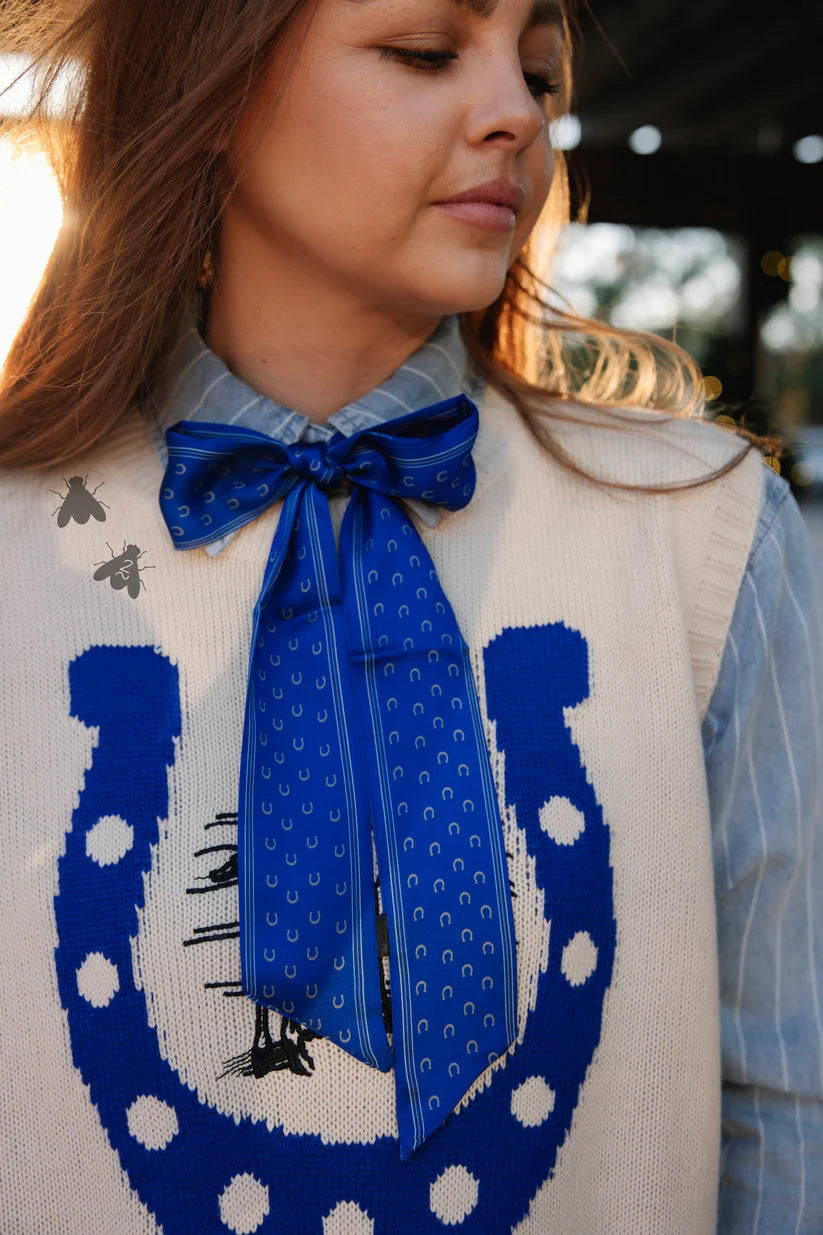 Get the preppy look by pairing it with a collared shirt, tying it in your hair, or giving that LOUIE handbag a Western flare by tying the handles. Again, the options are seriously endless.